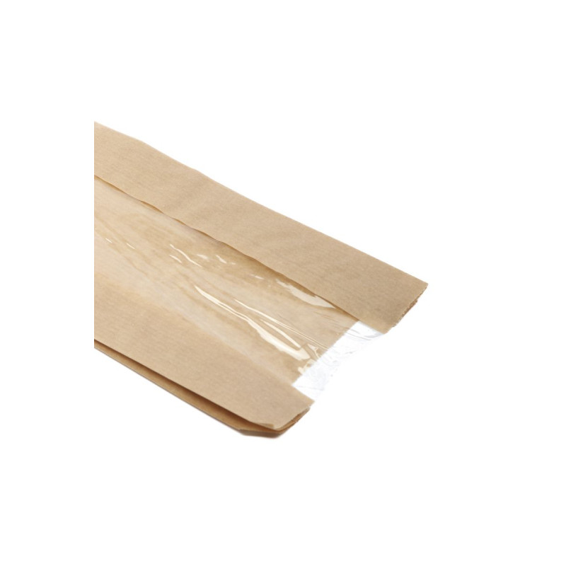 Jūsu iepirkumu grozs ir tukšs! Papīra tūtas ar lodziņu, brūnas, PAP+PE, 12x5x58cm