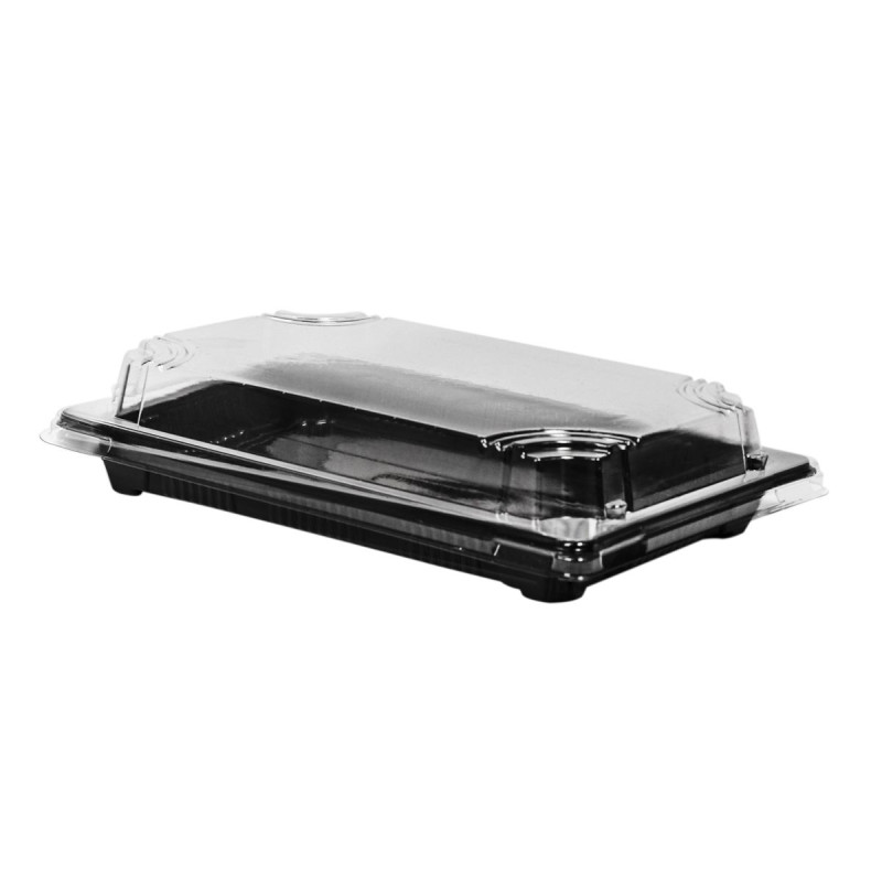 Jūsu iepirkumu grozs ir tukšs! Suši trauks ar caurspīdīgu vāku, PET, melns, 21.5x13.6cm