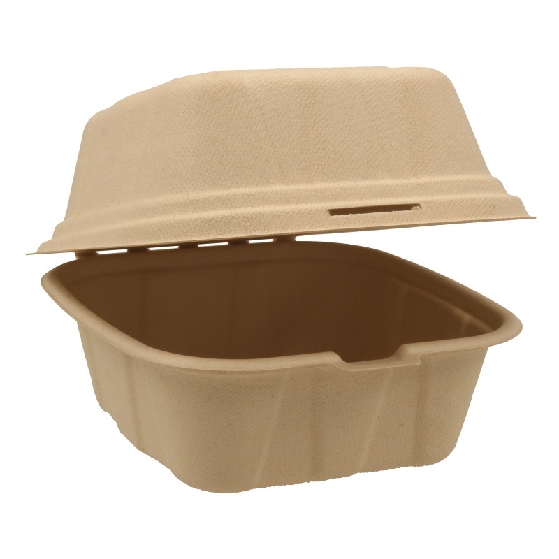 Jūsu iepirkumu grozs ir tukšs! Burgera kārba ar vāku, cukurniedru, 15.5x15x9.5 cm