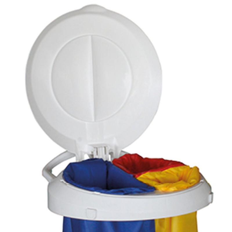 Atkritumu maisu turētājs - ratiņi DELTA ar vāku un pedāli, balts