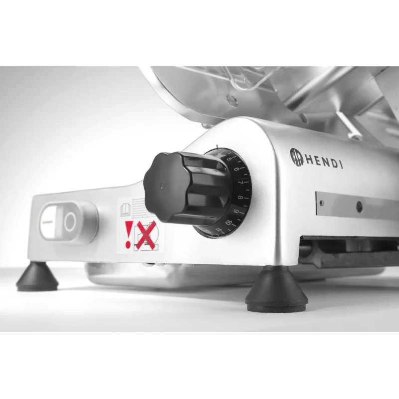 Slaiseris 220 HENDI Profi Line ir profesionāla griešanas iekārta, kas paredzēta precīzai un vienmērīgai pārtikas produktu sagriešanai. Tas ir ideāli piemērots gaļas un citu produktu griešanai profesionālās virtuvēs, nodrošinot augstu veiktspēju un drošību. Jaudīgais dzinējs ļauj viegli apstrādāt arī cietākus produktus, savukārt slīpi novietotais asmens nodrošina vienmērīgu griezumu.